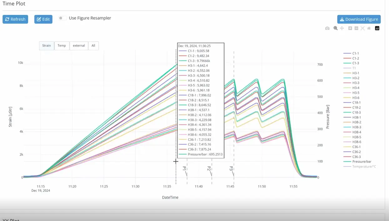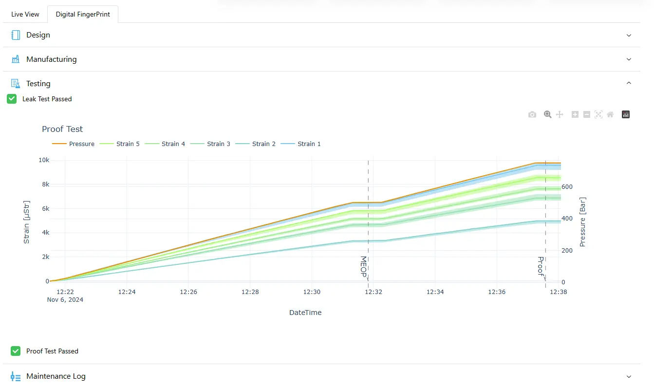 By recording the structural behavior during proof testing and/or acceptance testings, we create a digital fingerprint — a "zero state" — unique to each unit. This reference enables future comparisons, anomaly detection, and performance tracking over time.